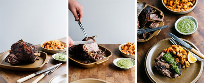 - Carve and divvy out the lamb along with the parsnip and carrot hash. Spoon over liberal amounts of the chimichurri. Serve just as is or with a simple dressed green salad on the side