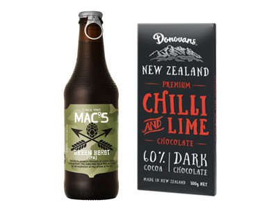 A beer to be savoured, Mac’s Green Beret IPA has notes of citrus, pine and tropical fruit, and works well with spicy foods, so try Donovans Premium Chilli and Lime Chocolate.