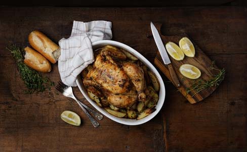 Roasted Addiction: roast a chicken with garlic and herbs and serve with a couple of sticks of warmed French bread and butter.