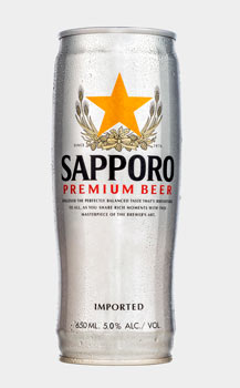 Prominently displaying the pioneers’ symbol of the North Star, the Sapporo Original Draft signature steel can was created in Japan in 1984. Inspired by a tumbler glass, the 650ml can originally had a removable top to resemble the experience of drinking from a tumbler and is called “Kappu Nama – “Kappu” meaning “cup” and “nama” meaning “draft”.