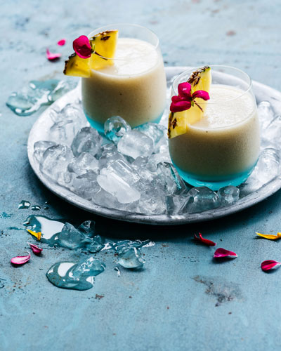 Dive into the tropical blue of this rum-based coconut and pineapple cocktail, like a swim in beautiful turquoise seas.