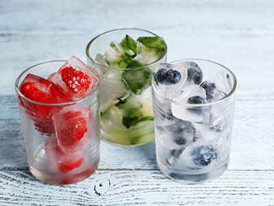 One of the most impressive ways to brighten up your beverages is to add flowers to your ice cubes. Use small edible flowers such as borage, pansies, nasturtiums or rose petals.