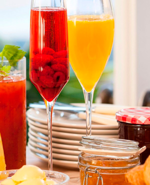 Fruity, elegant and oh-so easy to prepare, this bubbly bellini is the perfect for serving with pancakes or Belgian waffles.