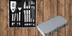 The BBQ Grill Tool Set is a 10-piece collection that includes all the essentials – tongs, spatula, basting brush, and more - all packed in a sleek aluminium carry case.