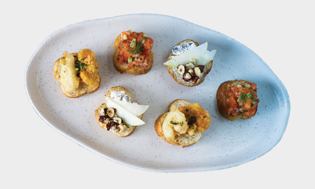 Fried Chicken and Oyster Bruschetta