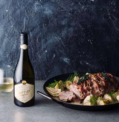 A smooth and creamy glass of Selaks The Taste Collection Buttery Chardonnay is a pork roast’s best friend with juicy pears, bacon and sage.