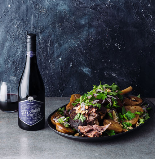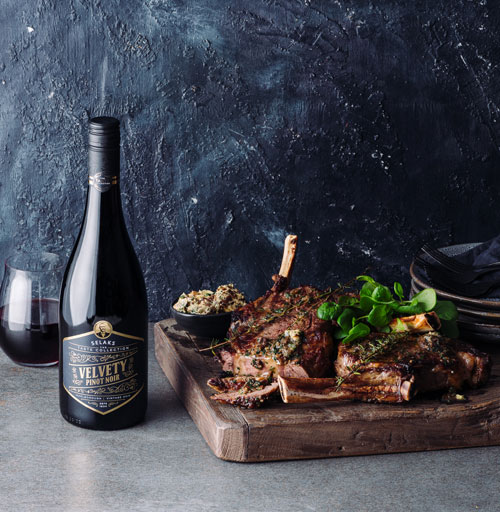 The rich, ripe berry flavours of the Selaks The Taste Collection Silky Smooth Merlot provide the perfect balance to a slow-roasted aromatic, nutty-crusted lamb.