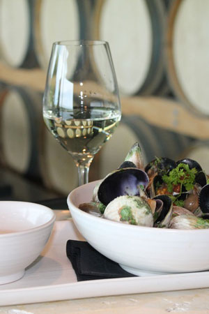 A crusty white loaf of bread and serving of Toast’s Marlborough Clams in Sauvignon Blanc Broth (recipe below).