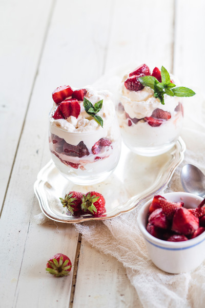 A quintessentially English summer dessert, Eton mess is a glorious combination of crushed meringue, fresh strawberries and whipped cream best served outdoors on a sunny day.
